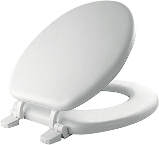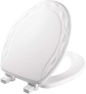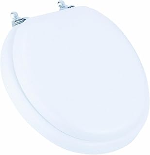 Padded Toilet Seat, Cushioned Soft Vinyl over Wood Core Seat, Secure Hinges, Easy Clean, Made in USA, Elongated, White