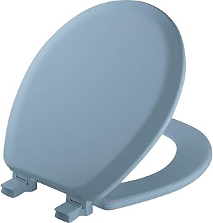 46EC 034 Molded Wood Toilet Seat with Lift-Off Hinges, Round, Sky Blue