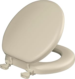 Padded Toilet Seat, Cushioned Soft Vinyl over Wood Core Seat, Secure Hinges, Easy Clean, Made in USA, Round, Bone