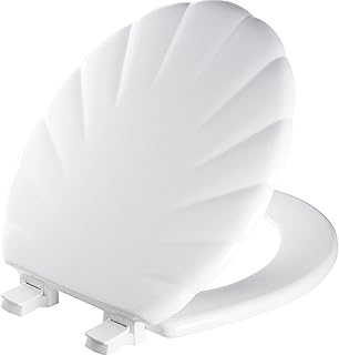 Sculptured Shell Toilet Seat, Easy Clean Hinges with Durable Wood Seat, Made in USA, Round, White