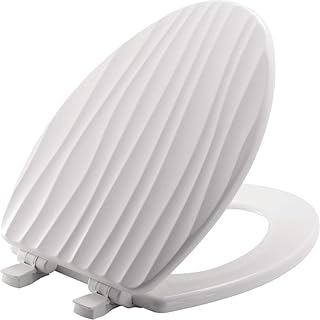 Sculptured Rainfall Slow Close Toilet Seat, Easy Clean Hinges with Durable Wood Seat, Made in USA, Elongated, White